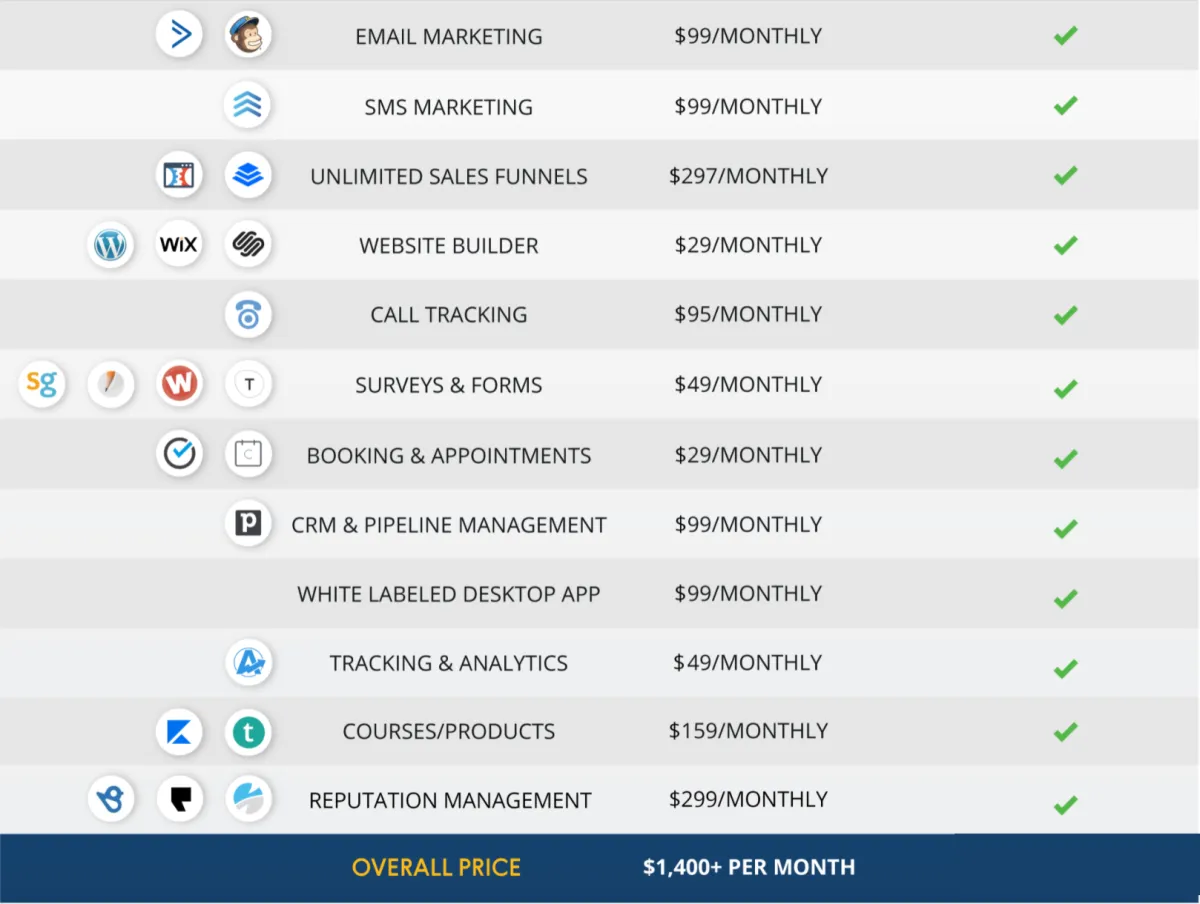 Before FACTS Built CRM you needed to pay for and manage a multitude of marketing tools that didn’t talk to each other and caused marketing campaigns to either not get implemented or have poor follow up. NOT ANYMORE. FACTS CRM replaces nearly all your current marketing tools and gives you some that you probably didn’t already have. All integrated, all in one platform.
